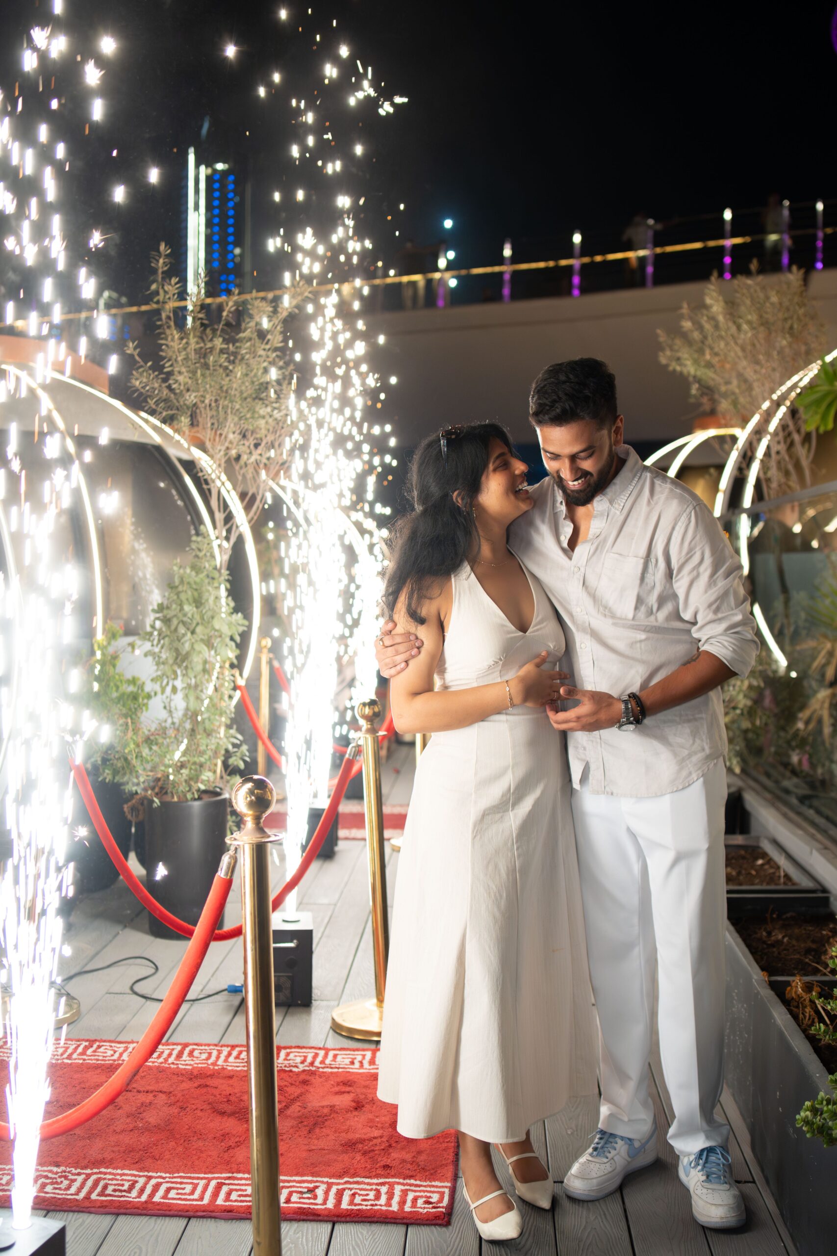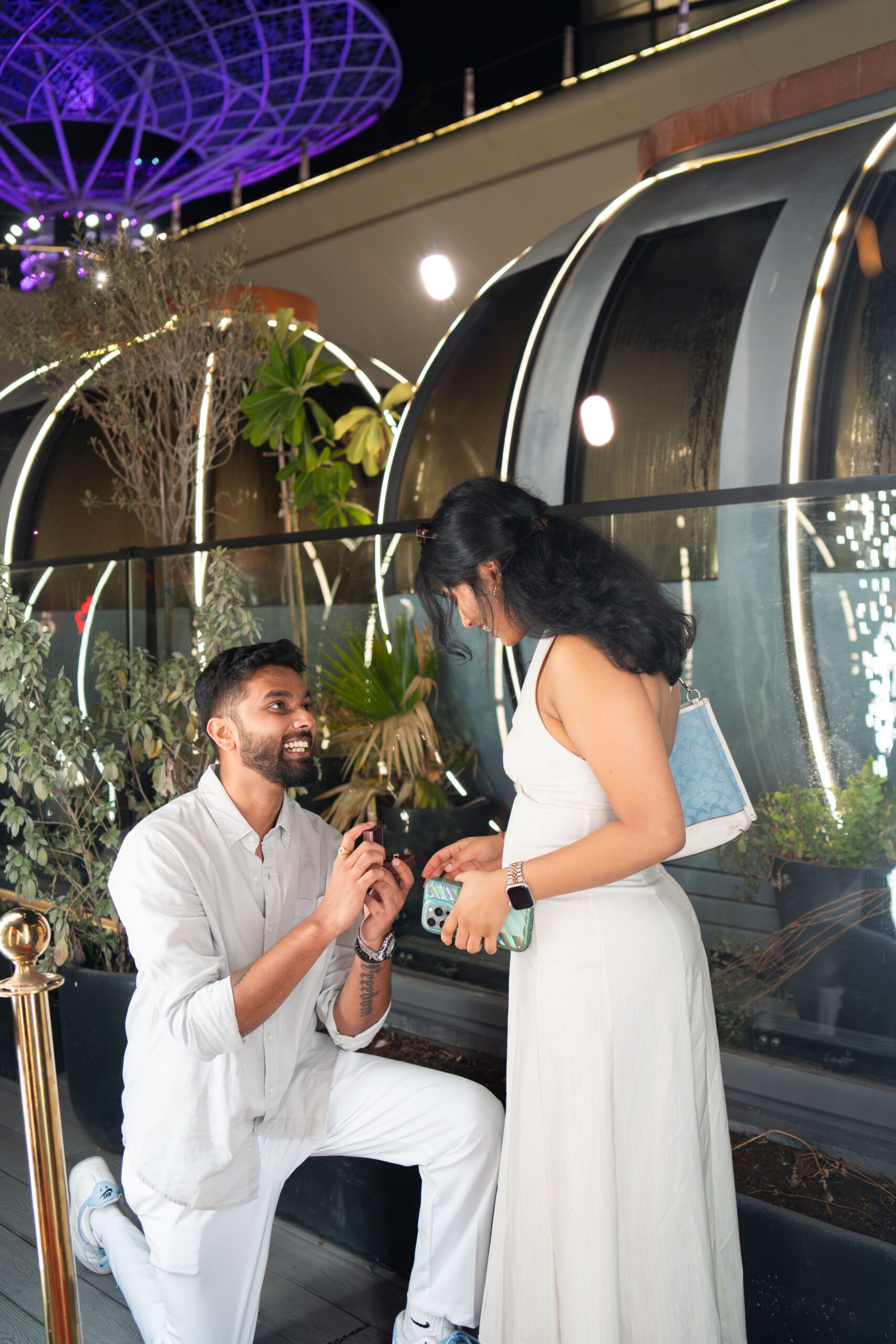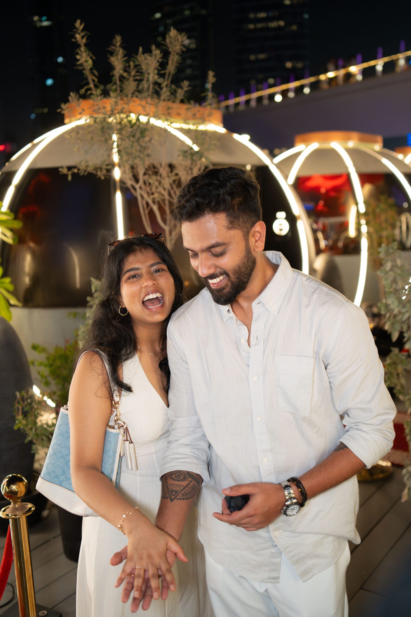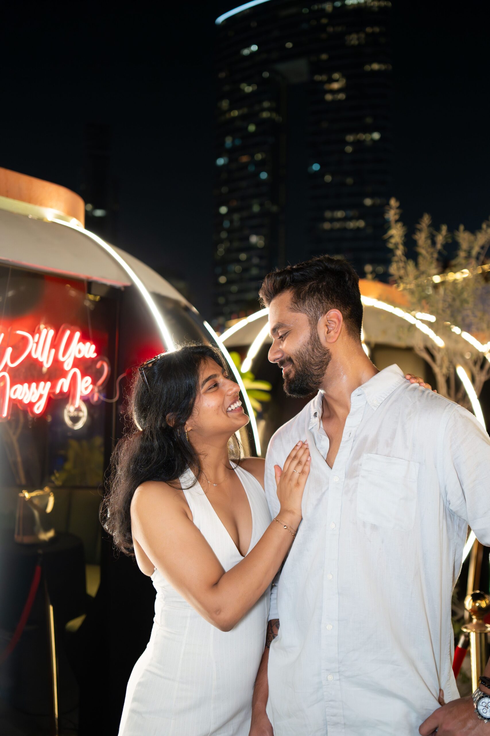 The concept of the proposal shoot was to capture the raw emotions and genuine connection between Suraj & Soumya during this unforgettable moment. Emphasizing intimacy and romance, the shoot used soft lighting and natural settings to highlight their love story. The goal was to create timeless, heartfelt images that reflect the joy, excitement, and tenderness of their engagement.