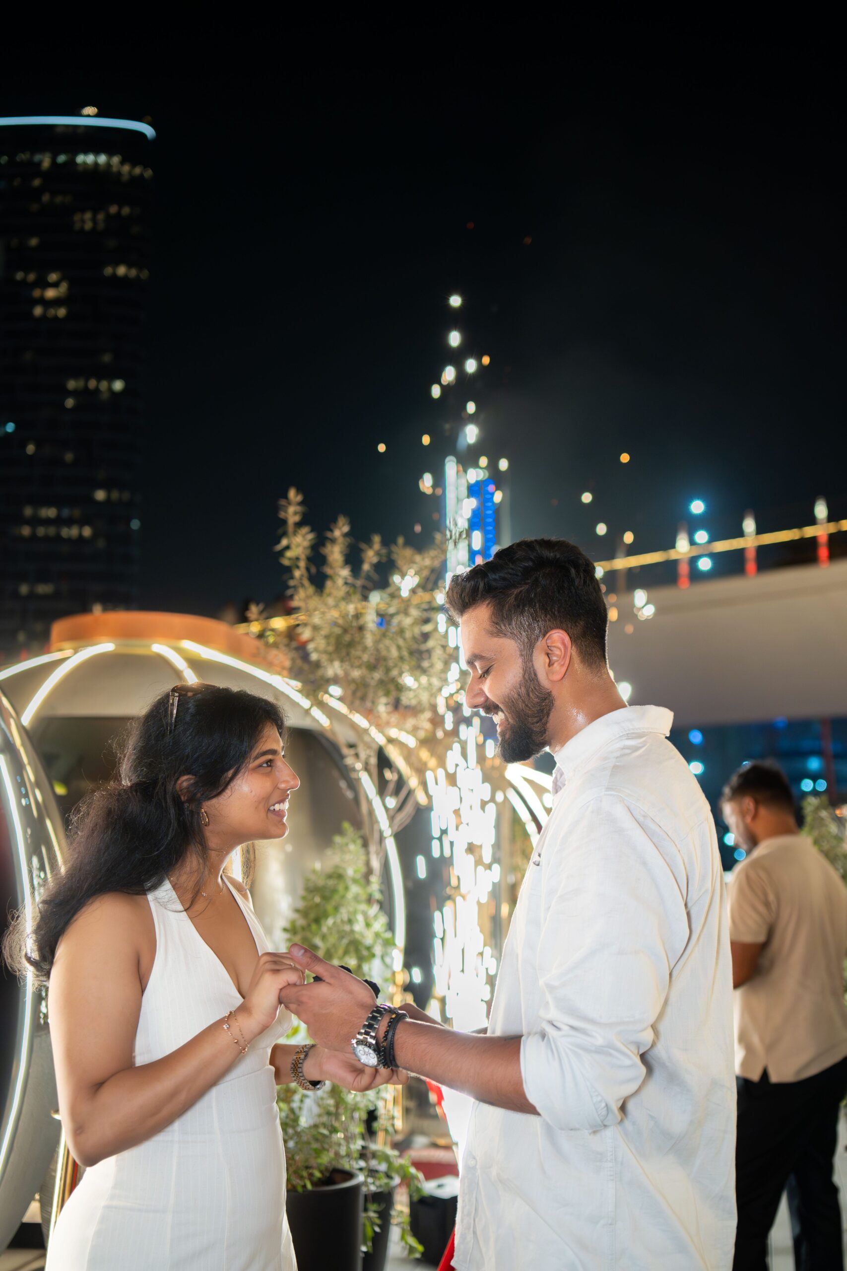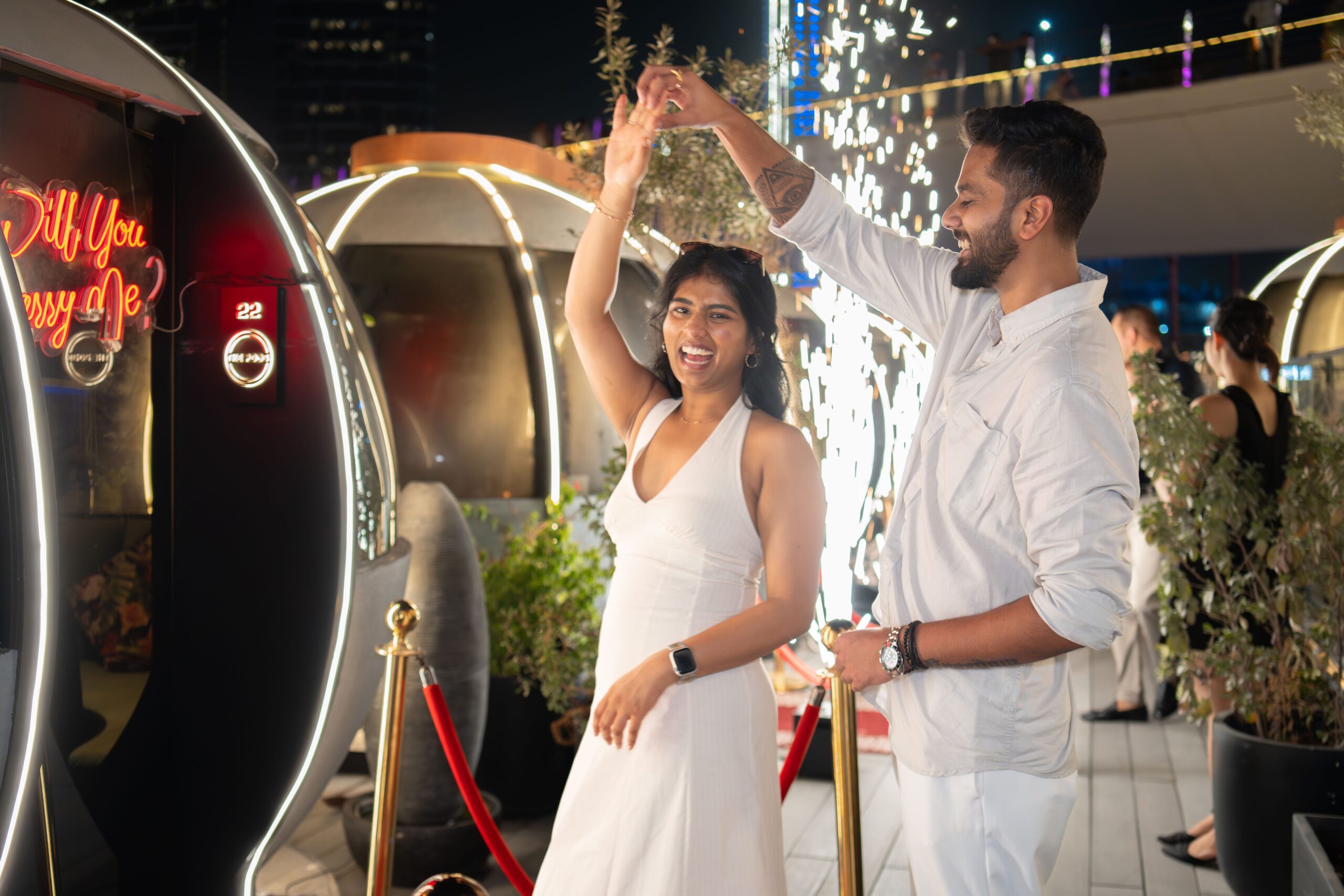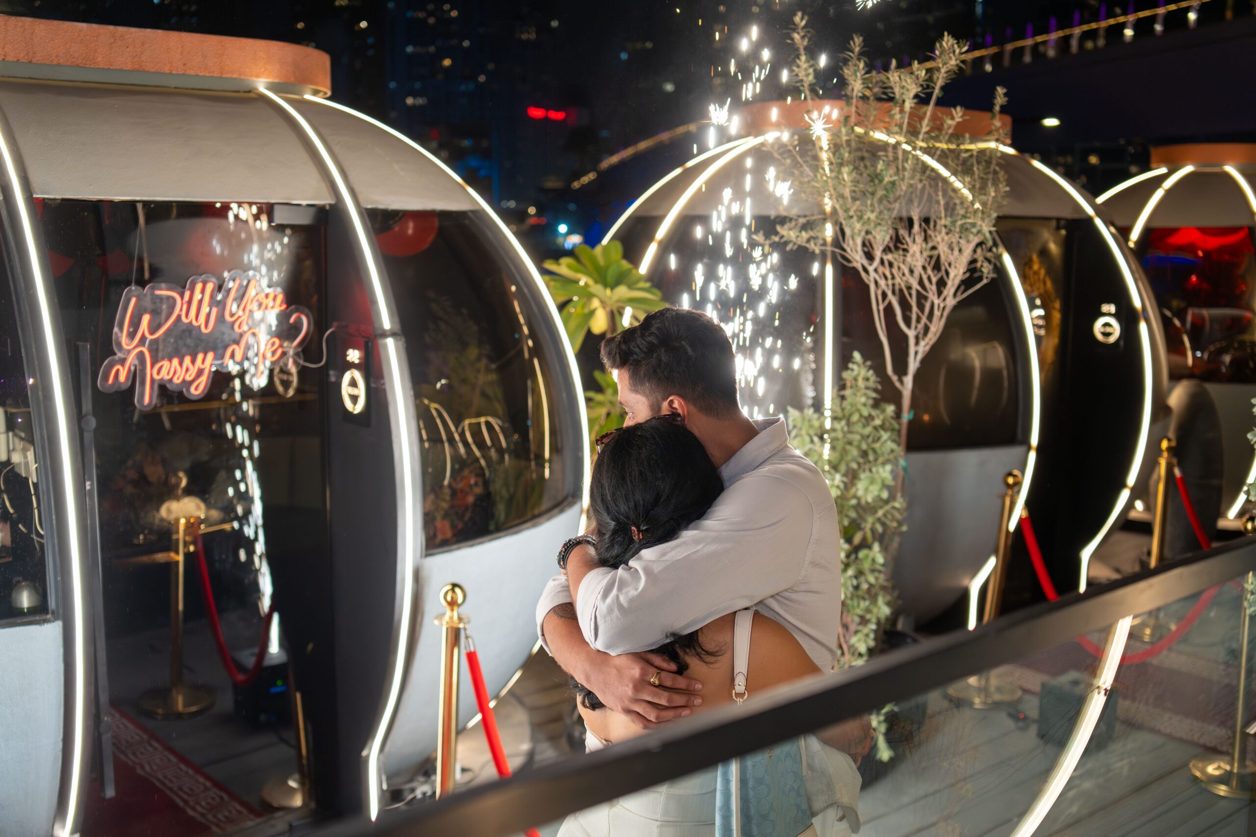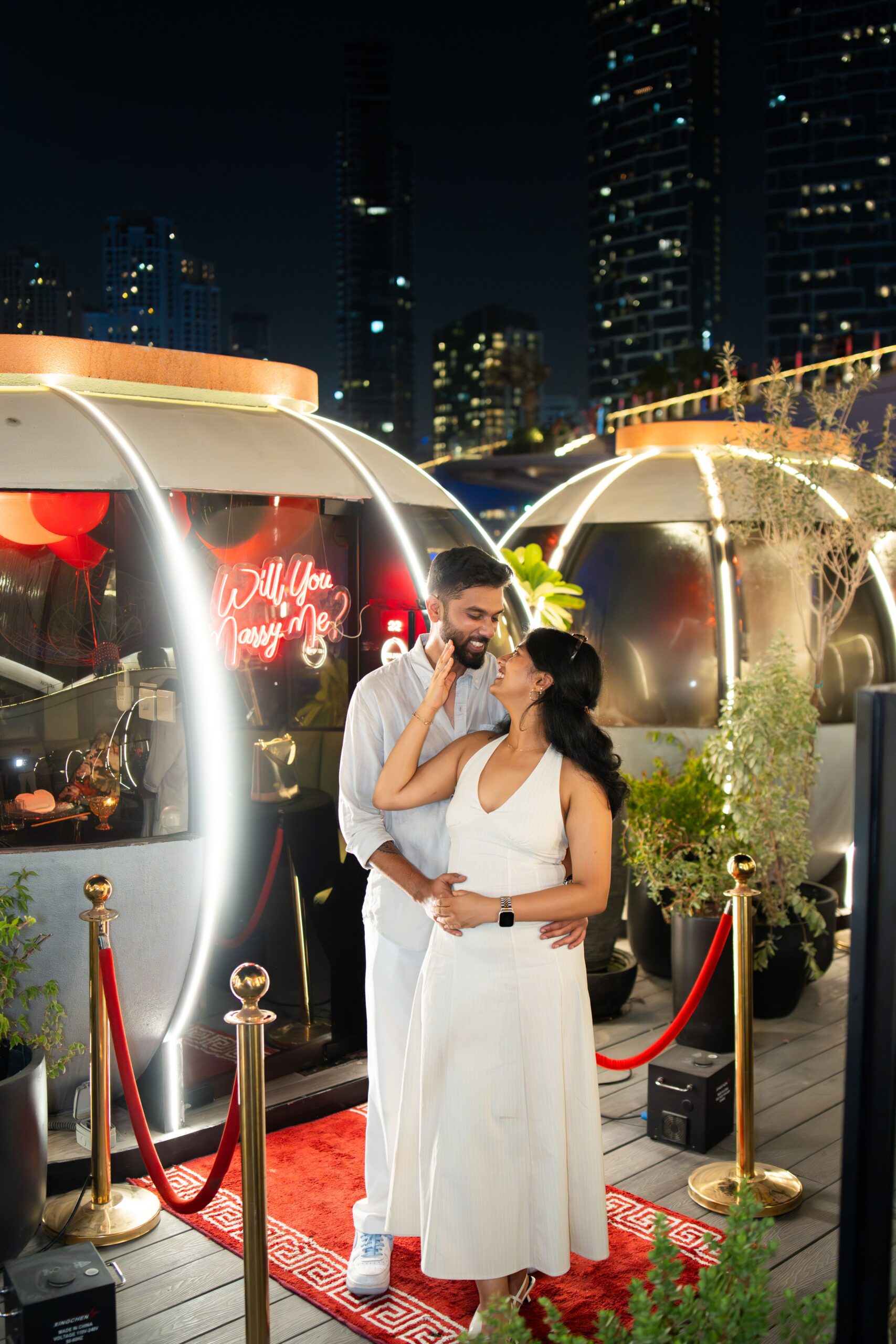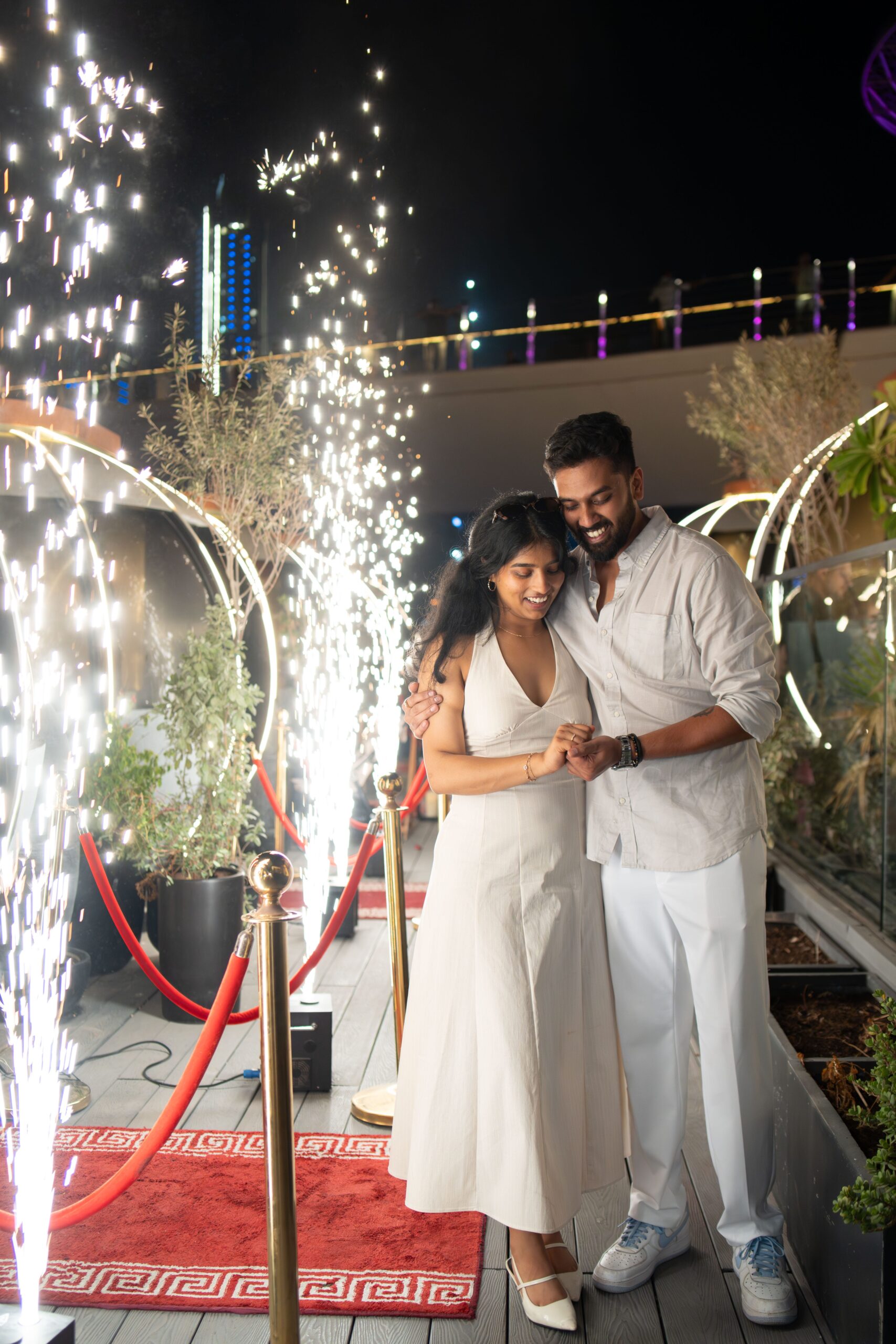 The concept of the proposal shoot was to capture the raw emotions and genuine connection between Suraj & Soumya during this unforgettable moment. Emphasizing intimacy and romance, the shoot used soft lighting and natural settings to highlight their love story. The goal was to create timeless, heartfelt images that reflect the joy, excitement, and tenderness of their engagement.